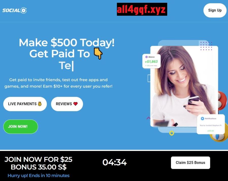 All4gqf.xyz is a website that calls itself the “#1 Influencer Network” and claims to pay users for testing apps, completing surveys and solving captchas. However, the part that caught my interest is that they also claim to pay for inviting new users to sign up on the platform, something they aggressively encourage. As the site was among the top searched sites on ScamAdviser, I decided to take a deeper look.