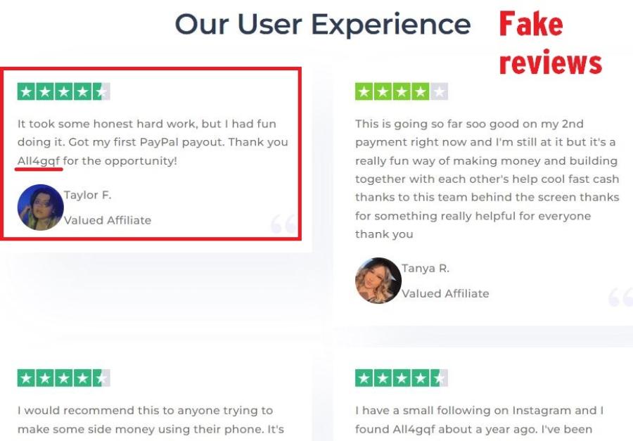 In another attempt to gain the trust of users by using deceptive marketing tactics, the site has several positive reviews formatted to look like Trustpilot reviews. However, All4gqf does not have any reviews on Trustpilot.
