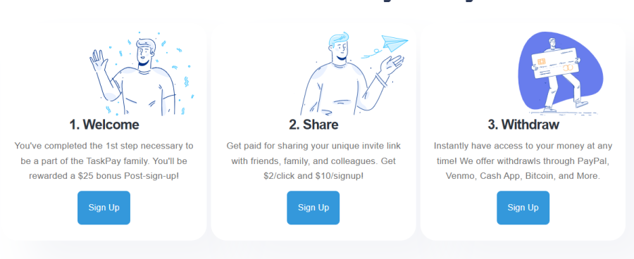 The platform claims that users can earn money by participating in simple tasks: referring friends, clicking on links, signing up for apps, and playing games. The site boasts generous payouts — $10 for each referral, $2 per click, and even a $25 bonus for signing up. These numbers are certainly eye-catching and promise quick, easy cash. But do these offers make sense, or are they just too good to be true?