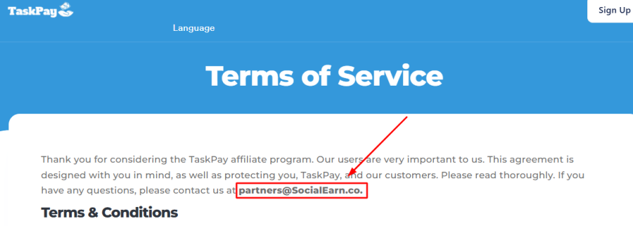 Another major concern is the inconsistency in their contact details. On their terms page, Earn.39bac.top lists an email address with a different domain: partners@SocialEarn.co.
