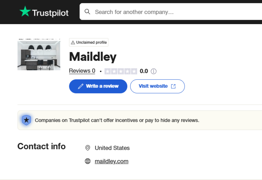 One of the most telling signs of a potential scam is the absence of reviews. Despite searching extensively, I couldn’t find a single review for Maildley.com on platforms like Trustpilot or ScamAdviser.