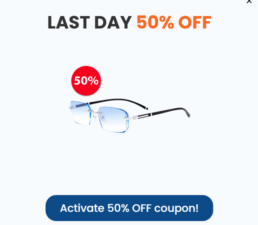 The moment you land on Noblu-glasses.com, you're greeted with flashy banners promising “Last Day 50% OFF!” and jaw-dropping prices. Sounds amazing, right? Almost too amazing.