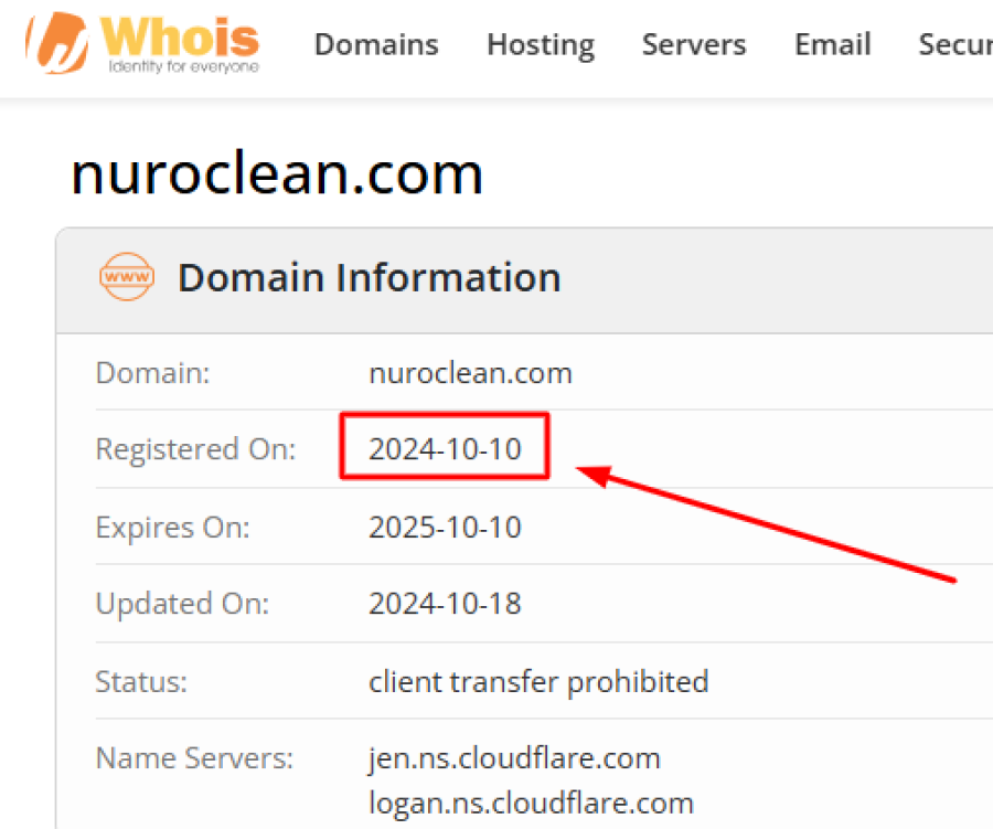 According to Whois Lookup, Nuroclean.com was registered in October 2024. While a new website doesn’t automatically mean it’s a scam, it does little to establish trust.
