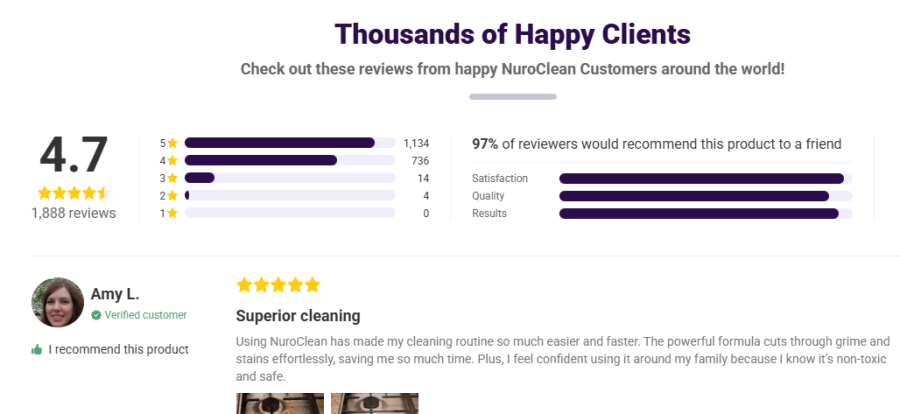 A look at Nuroclean.com’s website reveals plenty of glowing reviews from happy customers.