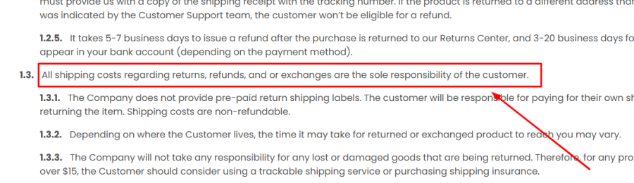 Most reputable online stores cover return costs for faulty products, so this policy is far from consumer-friendly. A strict and costly return policy can be a tactic to discourage refunds and keep customers from reclaiming their money.