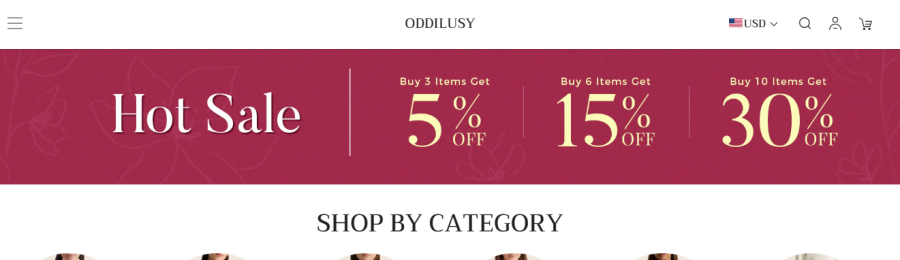 Right off the bat, Oddilusy.com throws “Hot Sale” deals at you like it’s Black Friday every day. Buy more, save more—classic marketing move. For example, if you buy 10 items, you get 30% off. Sounds like a steal… but is it too good to be true?