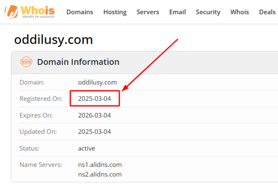 According to Whois and ScamAdviser, Oddilusy.com was registered in March 2025—so, yeah, it’s a baby in internet years. While new sites aren’t automatically shady, they do raise red flags when combined with other sketchy signs (spoiler: there are more).