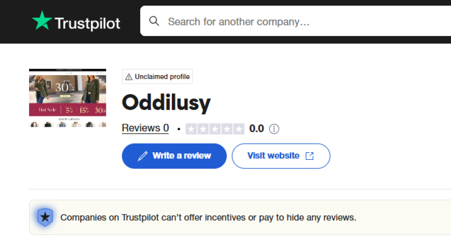 A good online store usually has a digital trail—glowing (or grumbling) reviews on platforms like Trustpilot, ScamAdviser, and so on. But Oddilusy.com? Nada. Zilch. It’s like the internet’s never heard of them, and that’s never a good look.