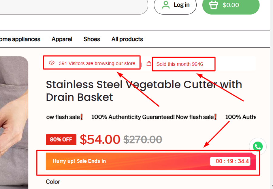 Qatteeey.com doesn’t just rely on discounts—it also uses high-pressure tactics to push shoppers into making quick decisions.