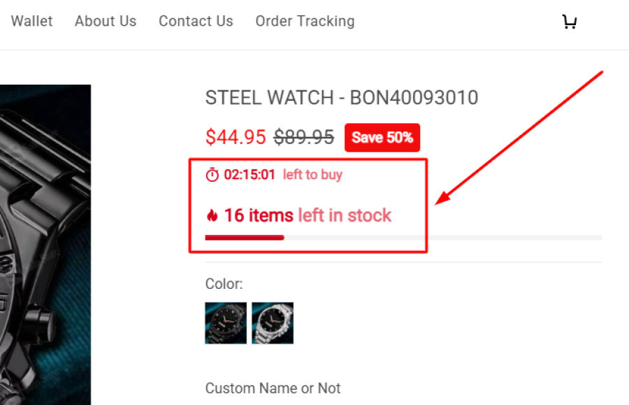Another concerning sign is the use of high-pressure sales tactics. Sadostore.com employs timers and stock warnings like “Only a Few Items Left!” to rush buyers into making impulsive purchases. When I browsed through their site, I saw a timer that showed the amount of time left to buy or lose the discount.