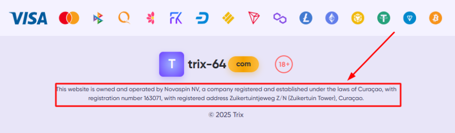 According to the website, Trix-64.com is “owned and operated by Novaspin NV, a company registered and established under the laws of Curaçao.” While Curaçao is home to many online casinos, it’s also known for its loose regulatory environment. Companies based there can operate with minimal oversight, which unfortunately makes it a magnet for shady operators.