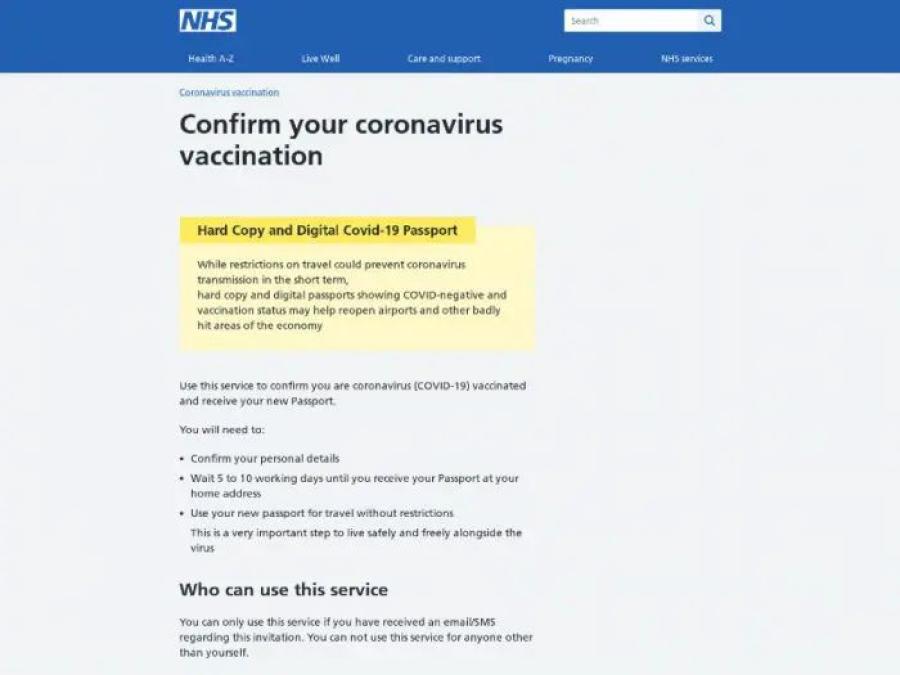 Posing as the National Health Service (NHS), scammers have been falsely claiming that people can apply for COVID-19 vaccination passports online through the links they provide: