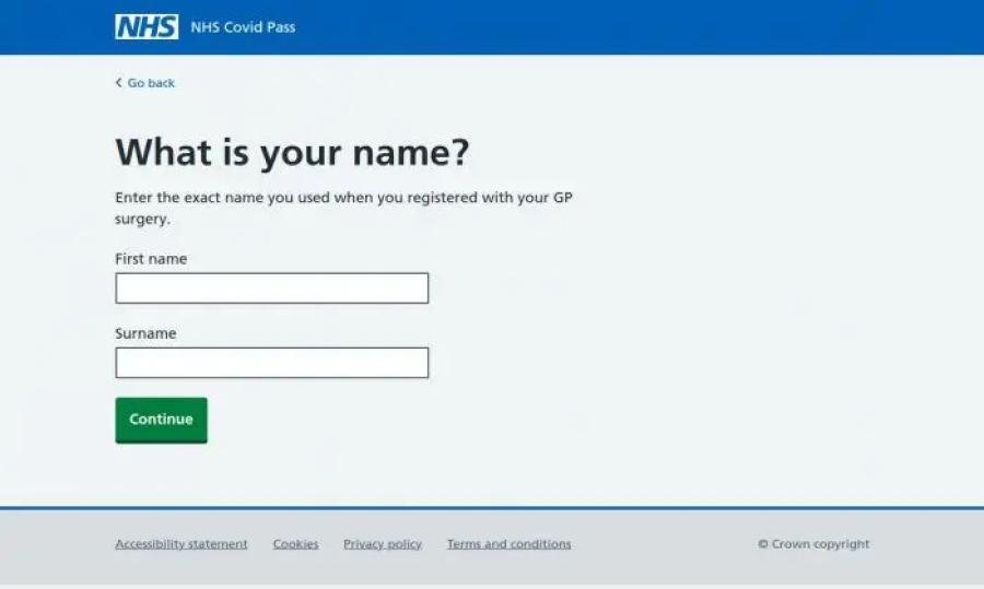 Once clicked on, it will take you to a fake NHS login page where you are required to enter your name as well as other personal information to apply for your (fake) COVID vaccination passport.
