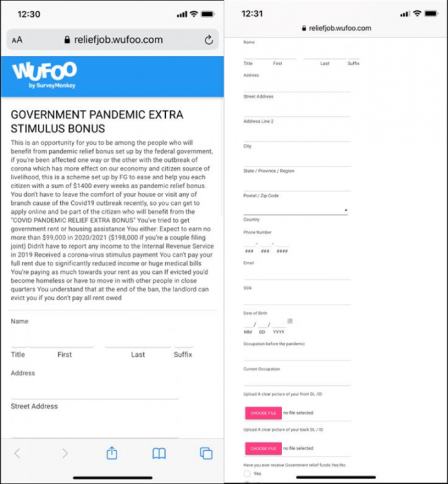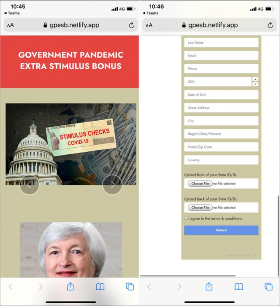 Scammers have been impersonating US government agencies and sending out text messages and emails, saying that people can claim stimulus bonuses via the attached phishing links.