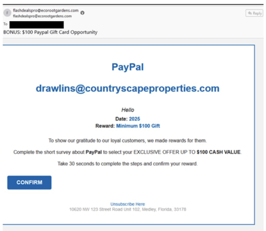 It looks harmless. A short survey? A $100 bonus? Sounds like a nice surprise.
