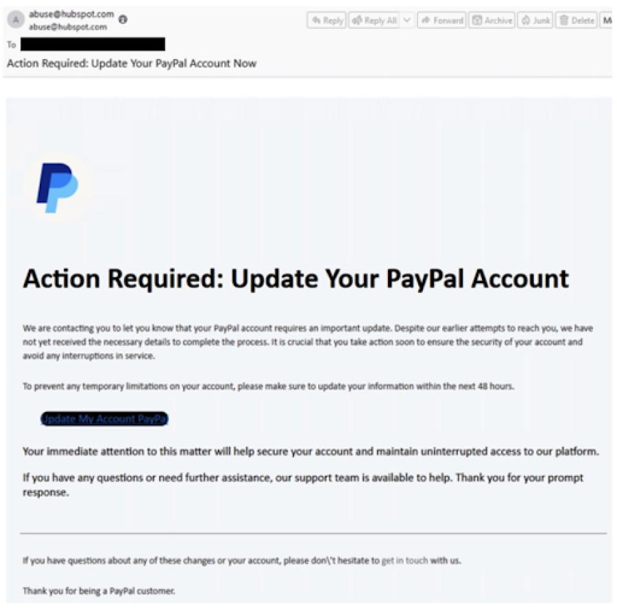This one’s the digital equivalent of someone yelling “FIRE!” in a crowded room. You get an urgent-looking email from what appears to be PayPal, warning that your account will be suspended, locked, or frozen unless you take action immediately, usually within 24 to 48 hours.